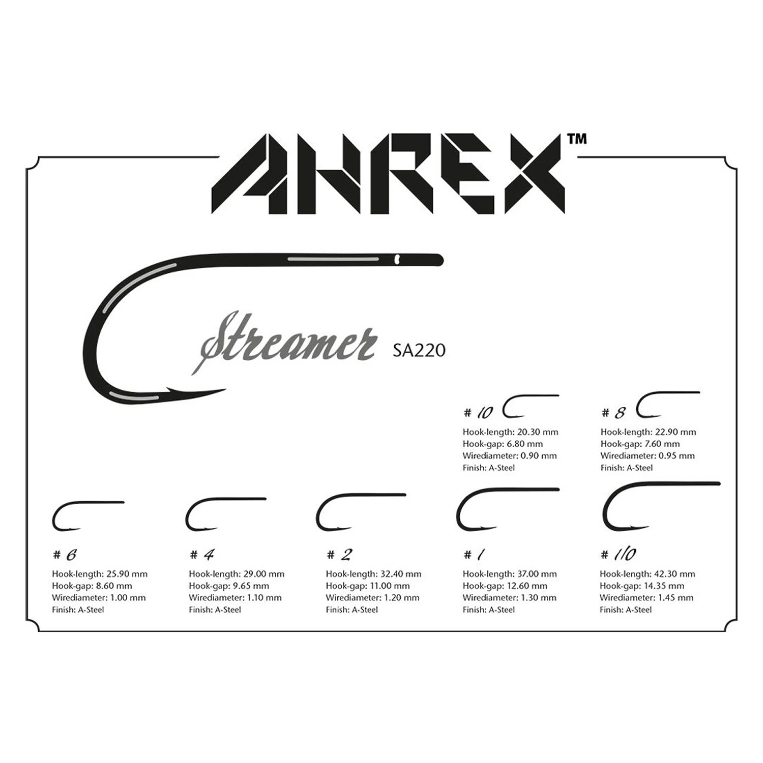 Ahrex SA220 SA Streamer. Een rechte schacht, recht oog streamer haak.