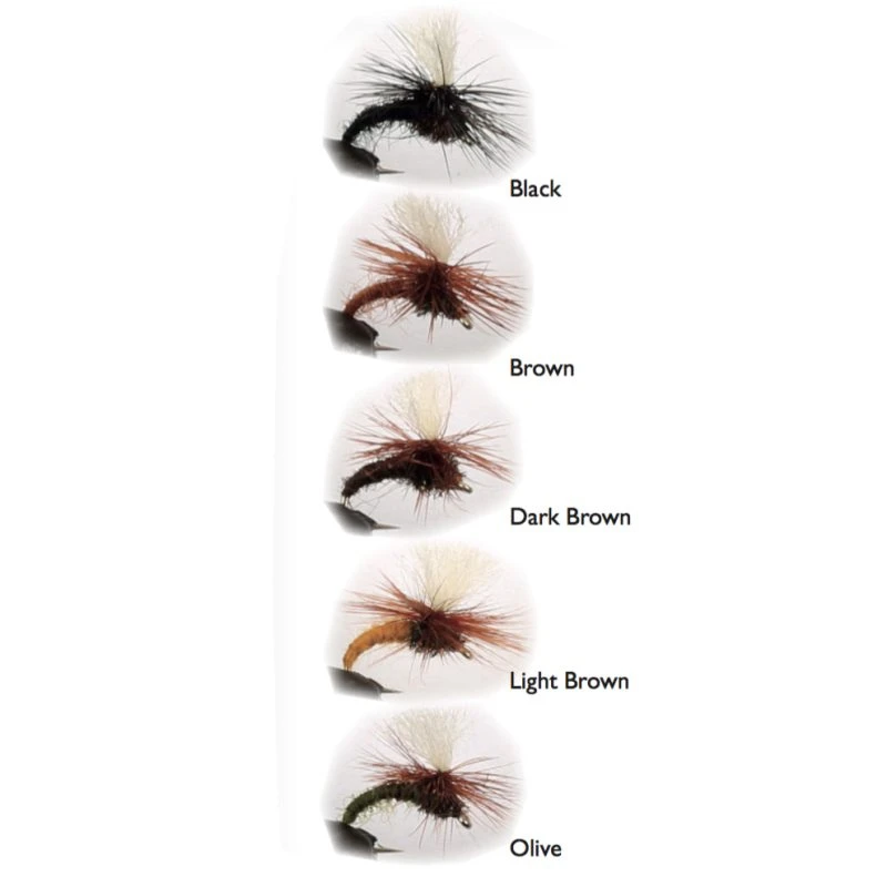 Dry Fly Klinkhamers 5-pack, maat 14. Klinkhamers die aan de oppervlakte hangen en veel libellen nabootsen.