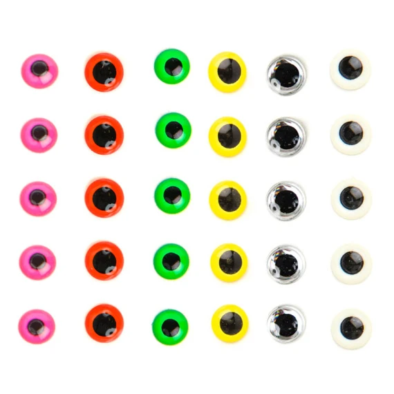 Zichtbare ogen, ofwel sterk fluo of echt reflecterend zilver. Beide ogen zijn 4,8 mm.