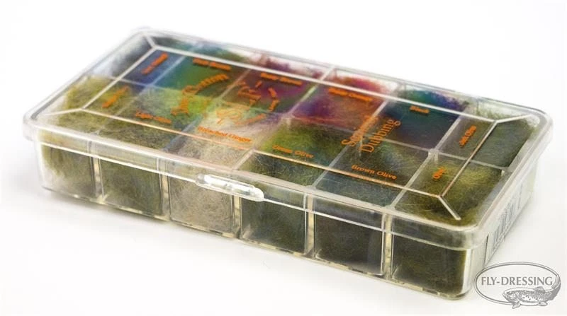SLF’s uitstekende eekhoorn dubbing in een dispenser. 12 coole kleuren, met een “gierige” uitstraling. Een must voor de nympspeler.